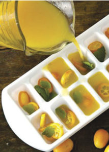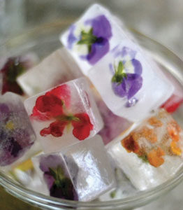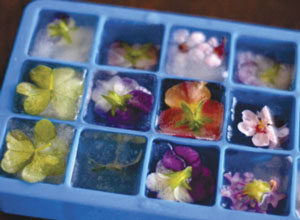 Se colocan en la cubetera sin el tallo, luego de lavarlas bien se agrega el almíbar o agua mineral sin gas. Los cubos de flores y frutas, son ideales para agregarlos en jarras de vidrio transparentes para saborizar el agua o limonada.