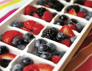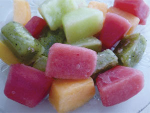 Estos novedosos cubitos te serán muy útiles para decorar un evento especial o un almuerzo al aire libre. Los puedes hacer con fruta licuada o trozos de frutas agregándole un almíbar suave.
