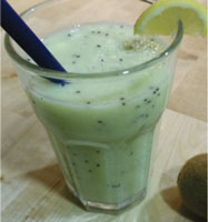 Preparamos la manzana y el kiwi y ponemos en el vaso de la licuadora con el zumo de limón y el agua, licuamos.