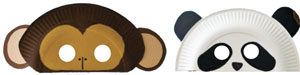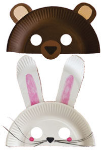 Dos sencillas ideas, tobilleras o muñequeras hechas con coleros, cocemos en los bordes cencerros o botones de metal. Las máscaras de animales, están elaboradas con platos descartables pintados y con agujeros para los ojos, pegamos elástico a los lados.
