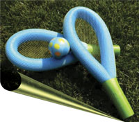 Anímate a hacer estas simples raquetas con los flota-flota en desuso, y de red usa las bolsas donde vienen envasadas las frutas; cinta ancha engomada y ¡manos a la obra!