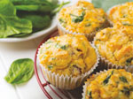 Precalienta el horno 15 minutos antes. Hervir el brócoli. En un tazón, agregar el brócoli frío y cortado en trozos pequeños, el tomate picado en cubitos, las hojas de espinaca picadas, la cebolla cortada pequeña, el queso, las claras de huevo, sal, pimienta y ajo en polvo. Mezcla bien. Si gustas, puedes agregar queso mozarella a cada bocado. En un molde para muffins, colocar los pirotines de papael. Hornear (a temperat. media) durante 25 minutos aprox. y retirar del horno.