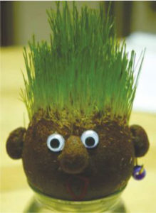 Si de entretener a los niños se trata, no te pierdas esta manualidad sumamente atractiva. Los materiales que precisas son: una media de nylon, tierra, semillas de césped o pasto, gomitas (esas que se usan para trenzas o pulseras), frasco de plástico o vidrio, ojos (que puedes hacerlos con material reciclado). Procedimiento: estirar la media por fuera de un tubo hueco y colocar las semillas (en la parte del pie de la media); agregar la tierra, quitar el tubo; hacer un nudo para cerrar la cabeza, dejando bastante comprimida la tierra; pegarle ojos y formar la nariz con la gomita; colocar la «cabeza» en un recipiente con agua y dejar el largo de la media que sobró, sumergido en el agua para que suba hasta la cabeza y haga germinar las semillas; cosa que sucederá en torno a los 10 días aproximadamente. «La decoración y la imaginación corre por cuenta tuya. Pueden hacerle orejas, boca, e incluso cuando crezca el pelo pueden juegan a ser peluqueros».