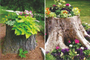 Si tienes espacio en tu jardín, no dejes de adornarlo con coloridas y variadas flores en esta primavera. Ideas sobran, acá te dejamos solo algunas a modo de ejemplo. Es una buena acción reciclar; ese tronco abandonado o un simple paraguas roto.