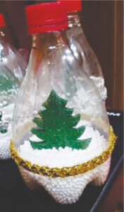 Aprovechemos a reciclar y enseñemos a los pequeños que no todo pasa por gastar mucho dinero. Podemos reutilizar botellas y vasos descartables, agregándoles dentro esferas de espuma plast, papá Noel, pino de navidad, etc. Las cosas hechas con nuestras propias manos tienen un valor emocional.