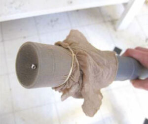 Pon una media de tul en el pico de la aspiradora. Cuando se te caiga o pierdas, una caravana, anillo o algún objeto pequeño, en un lugar inaccesible para la mano, pero que sí pueda llegar la aspiradora, es la solución.