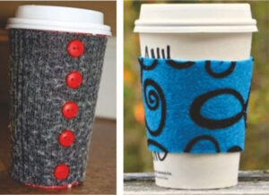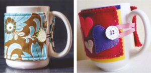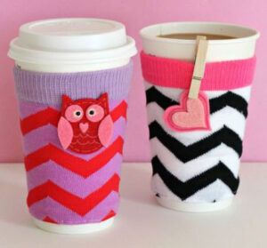 Decorar nuestras tazas o vasos de café, té, chocolate…puede ser tan simple como elegir la tela de nuestro agrado o la media que perdió su par, o la manga de un buzo en desuso, o un trozo de fieltro, etc, etc…y darnos un mimo suave al tacto de nuestras manos en estos días de invierno.