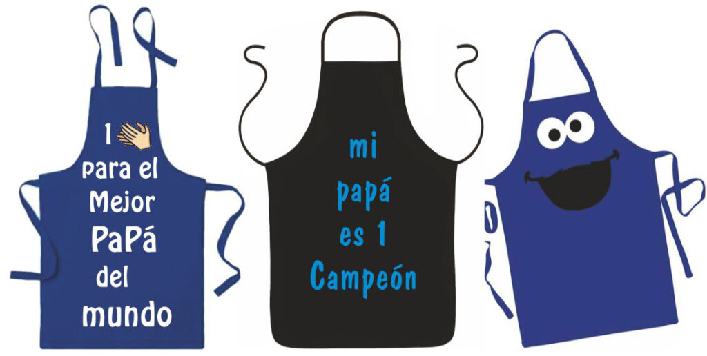 Para los Papis amantes de la cocina o la parrilla, 1 delantal es el regalo perfecto. Lo pueden hacer los mismos niños, reciclando un jeans o cortando un trozo de tnt; pintado con letras o como muestra el dibujo con ojos y boca.