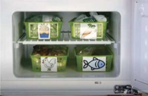 Si tienes poco espacio en la heladera, acá te damos algunas ideas útiles. Puedes colgar de las rejillas, bolsas (perforadas) con frutas, sostenidas con pinzas. Y para que las latas y las botellas de salsas no anden de un lado a otro, colócalas dentro de tapers, al igual que en el frezer, y organízalas por vegetales, carnes, etc., como lo muestra la foto.