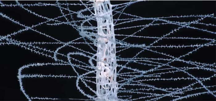 Los científicos, cuando buscan animales longevos, van al fondo del océano, pues es allí donde habitan los poríferos, o esponjas de mar. Se sabe que algunos de estos invertebrados son milenarios, pero ahora uno de ellos batió el récord, se calcula que tiene al menos 17.000 años de edad, o sea el ser vivo más antiguo de la Tierra. Según la revista Geophysical Research Letters, se trata de un ejemplar de la especie Monorhaphis chuni, perteneciente a la clase Hexactinellida, conocidas como esponjas de vidrio, por su contenido de sílice. Fue hallado a más de 1.000 metros de profundidad en el mar de la China Meridional, en el océano Pacífico. La M. chuni forma una espícula o tallo de hasta 3 metros de largo, para anclarse en los sedimentos del fondo marino. Tiene el aspecto de la fibra óptica y todavía de mejor calidad para la trasmisión de luz que la fabricada por nosotros. Los científicos extrajeron un tallo de éstos y lo analizaron en el laboratorio. Al realizarle un corte transversal presenta anillos, como los de un árbol, lo que les permite saber la edad del individuo y las condiciones del océano en cada época de su vida. Concretamente analizaron los isótopos de silicio. El sílice es usado por las diatomeas, algas microscópicas que viven en la superficie del océano, para fabricar su caparazón. Dichos organismos convierten el dióxido de carbono en carbono orgánico, el cual termina depositado en el fondo marino. Este ciclo ayuda a limitar el efecto invernadero que calienta el planeta. Varias fuentes.