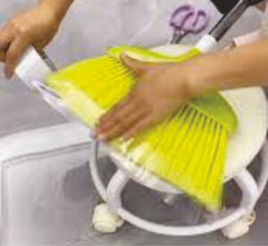 Si el problema en la casa son los pelos de nuestras mascotas o la caída del cabello humano cuando nos peinamos, acá te damos una sencilla solución. Colocas cinta adhesiva de embalar en la parte inferior de la escoba y los pelos se pegarán a la cinta.