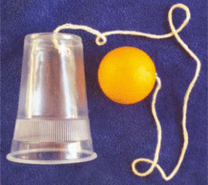 Vaso Baloncesto: es muy fácil de hacer. Precisas 1 vaso descartable, 1 cordón de 50 cm de largo y una bola o pelota pequeña. Las imágenes te ilustran la confección.