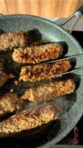 Coloca en un bowl la pulpa picada, agrega cebolla y ajo rallados (en proporción a la cantidad que uses de carne) y condiméntala a gusto, e integra muy bien todos los ingredientes. Luego, coloca el bolo sobre un nylon con sobrante por ambos lados, dale forma de rectángulo, cúbrelo con el nylon sobrante por encima y con un rodillo estíralo; resérvalo. Aparte sofrita las cebollas cortadas en rodajas finas hasta caramelizarlas. Coloca una porción de la cebolla sobre el borde la carne y con ayuda del nylon, forma un rollito bien apretado para que no se salga el relleno. Corta ese rollo de manera que puedas formar el próximo envoltorio; a su vez, corta esa tira en 2 o en 3 partes, similares a chorizos individuales. Hacer el mismo proceso hasta terminar de formar todos los rollitos. Coloca en una sartén un chorro de aceite y cocina los rollitos girándolos hasta que estén cocidos y dorados. Opción: se pueden cocinar en una salsa pizzera. Los puedes consumir sobre una rapidita, dentro de pan vienita (pan para frankfurtes, panchos), o como tú prefieras.